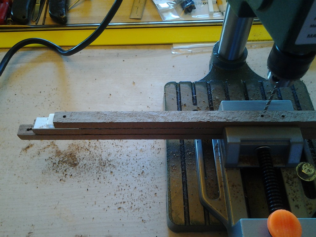 Next, drill the axial holes with a # 30 (.128"). Do not drill the hole to deep or you will have to much slop in side to side play of the wheels. I drilled the holes approximately 1/8" to 3/16" deep. You will need to test fit for proper fit. The corners are the most tricky part of the assemble. Laid out here is how the parts will go together.